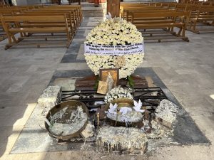 Visitiamo la chiesa con Wadie e sua mamma, accendiamo con loro una candela sull’altarino adibito in memoria dei martiri sul luogo dell’esplosione. «Gesù riportami il papà e tanti colori», questa la preghiera di Wadie che spezza il cuore. Nonostante le promesse di Al-Sharaa, presidente siriano dopo Assad, nell’ultimo anno in Siria abbiamo assistito al ripetersi di uno stesso copione di violenza e instabilità, di rese dei conti sanguinosissime che hanno coinvolto soprattutto le minoranze, i drusi di Swaida a pochi chilometri da qui, i Curdi ad Aleppo, gli Alawiti, trucidati a migliaia sulla costa. A Wadie e alla sua mamma e alla famiglia di Anjie come a tanti qui che vivono nell’incertezza, non possiamo promettere né sicurezza, né serenità, ma possiamo assicurargli che l’associazione Pro Terra Sancta, insieme ai francescani della Custodia di Terra Santa, non li lascerà mai soli.