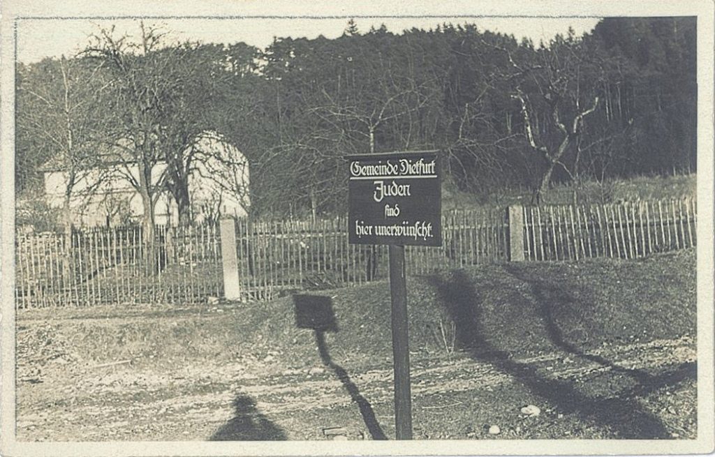 3. e 4. Scopre dove è capitato. Qualche anno dopo, durante un breve viaggio di lavoro, sulla strada verso Berlino documenta la presenza di cartelli contro la presenza degli ebrei, Juden