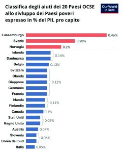 10 Simon van Teutem, “Most OECD countries fail to reach the UN’s target for aid to the poorest countries”, www.ourworldindata.org, 11 marzo 2025.