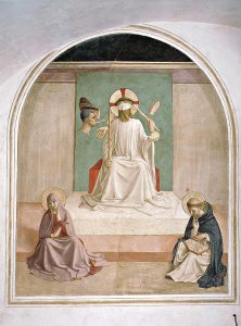 Beato Angelico, Cristo deriso, la Vergine e san Domenico, 1438-1439 circa, affresco, Firenze, Museo di San Marco