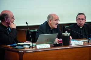 Il card. Tolentino de Mendonça con Miguel De Salis, a sinistra, e Mariano Fazio a destra (© Gianni Proietti – Pontificia Università della Santa Croce)