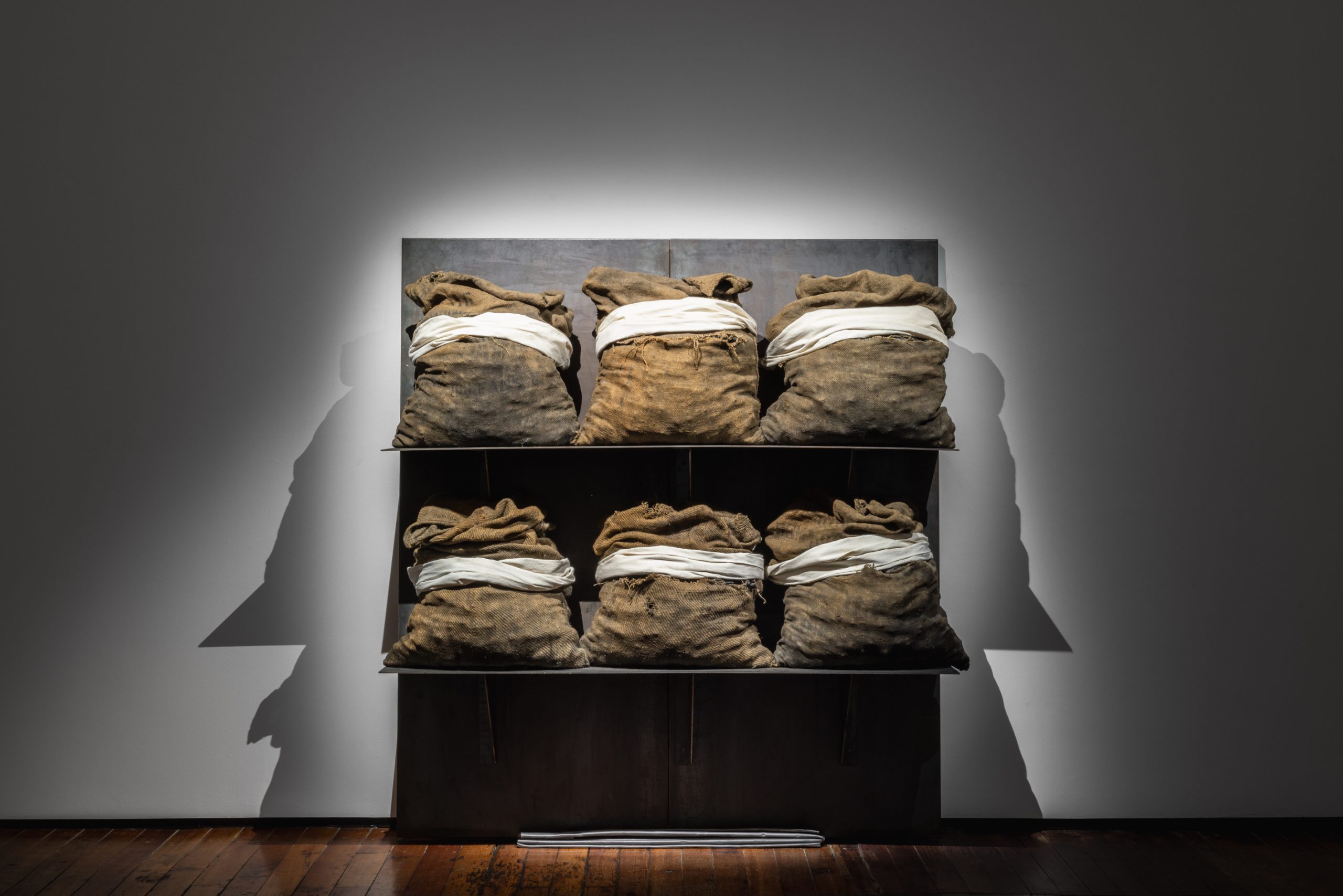 - Kounellis, Untitled (2003), veduta della mostra. Ph. Guido Rizzuti. Courtesy Galleria Fumagalli