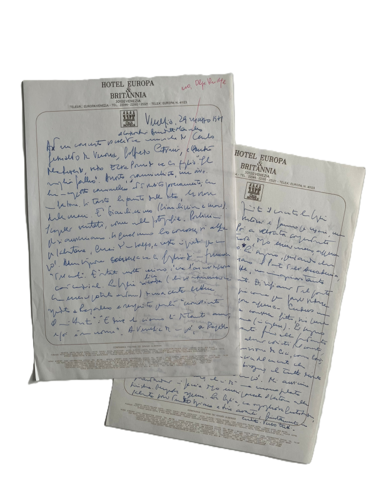 Una signora racconta a Olga i funerali del «conte»: è stato tutto molto carino, c’era l’arcivescovo, così cardinale. Olga si rammarica di non esserci potuta an­dare e poi (indignata): una lettera spedita a Rapallo e respinta perché «Sconosciuto – al mittente». «E dire che siamo lì da tanti anni, e poi è un nome». A Venezia da un po’, a Rapallo forse a fine aprile.